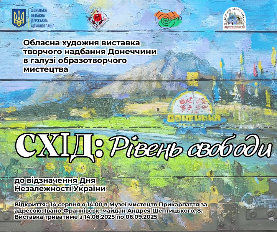 Обласна художня виставка «Схід: рівень свободи» – мистецька акція, що спрямована на відзначення Дня Незалежності України, яку сьогодні виборює українська нація в війні проти російської федерації та демонстрацію творчого надбання Донеччини в галузі образотворчого мистецтва.